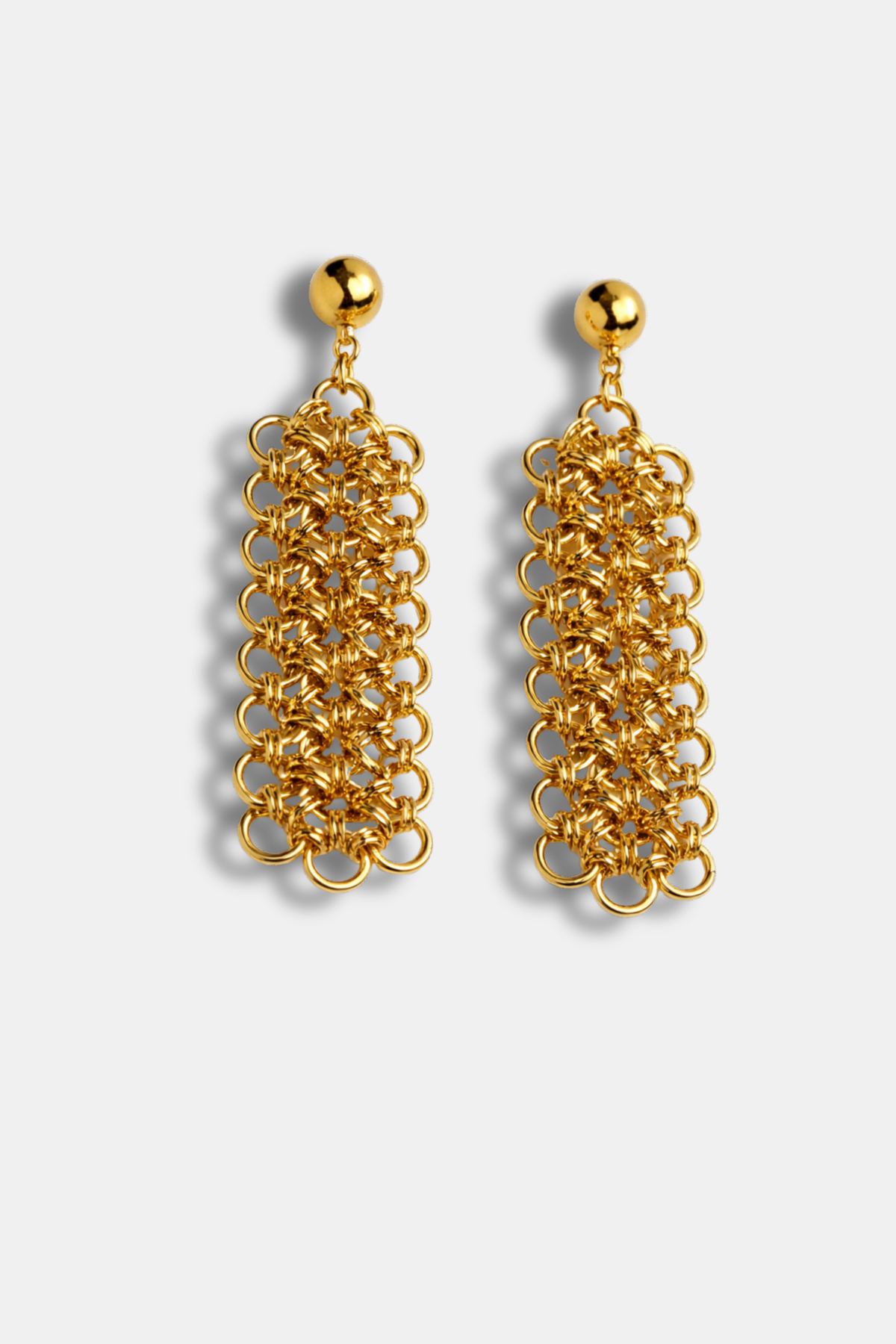 These Correa earrings are inspired by the strength and aesthetic of classic chains and straps, reinterpreted in a compact and sophisticated design. Formed from polished and intertwined metal links, they create a geometric structure with volume and texture, adding presence and a contemporary feel.