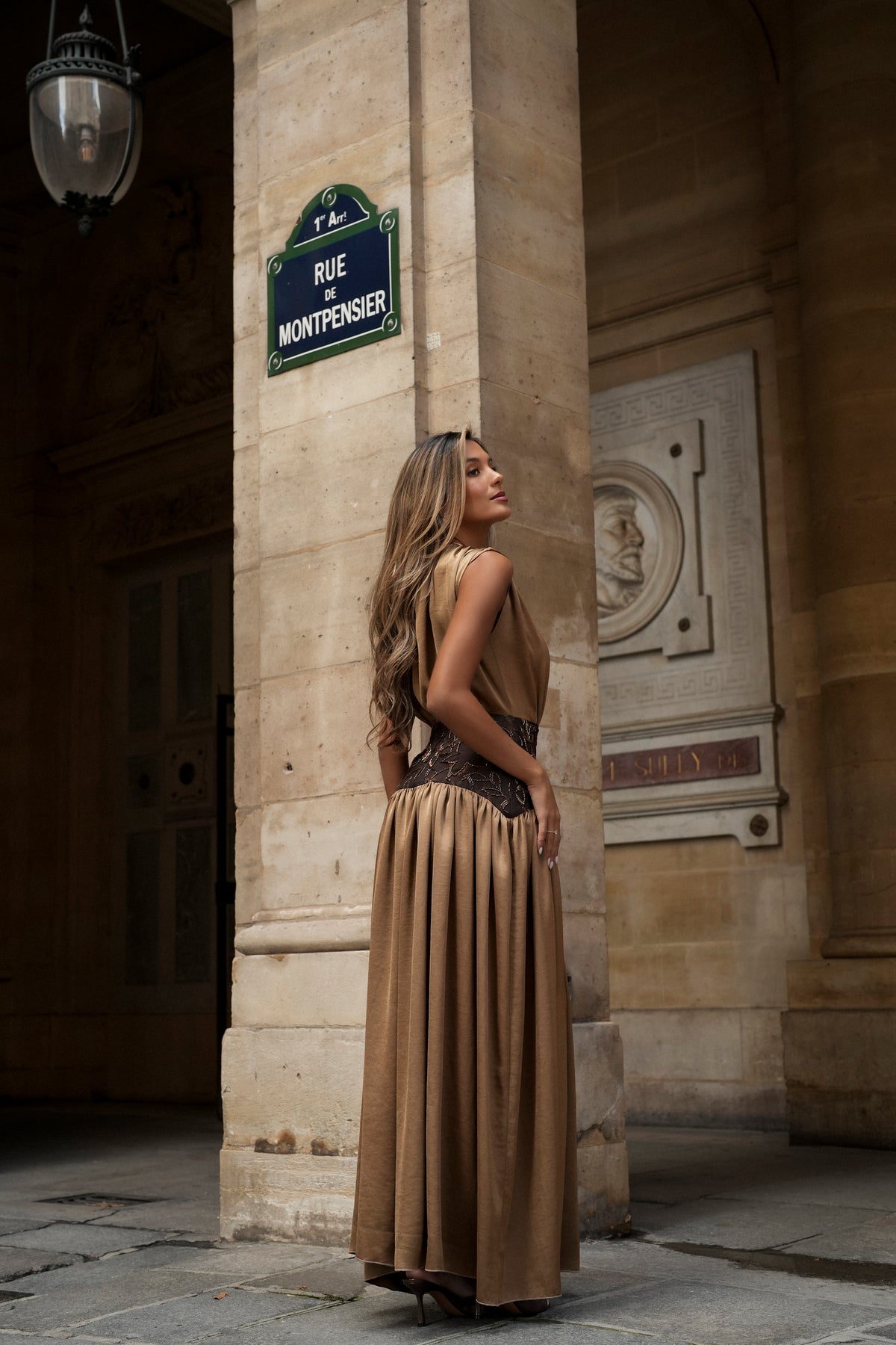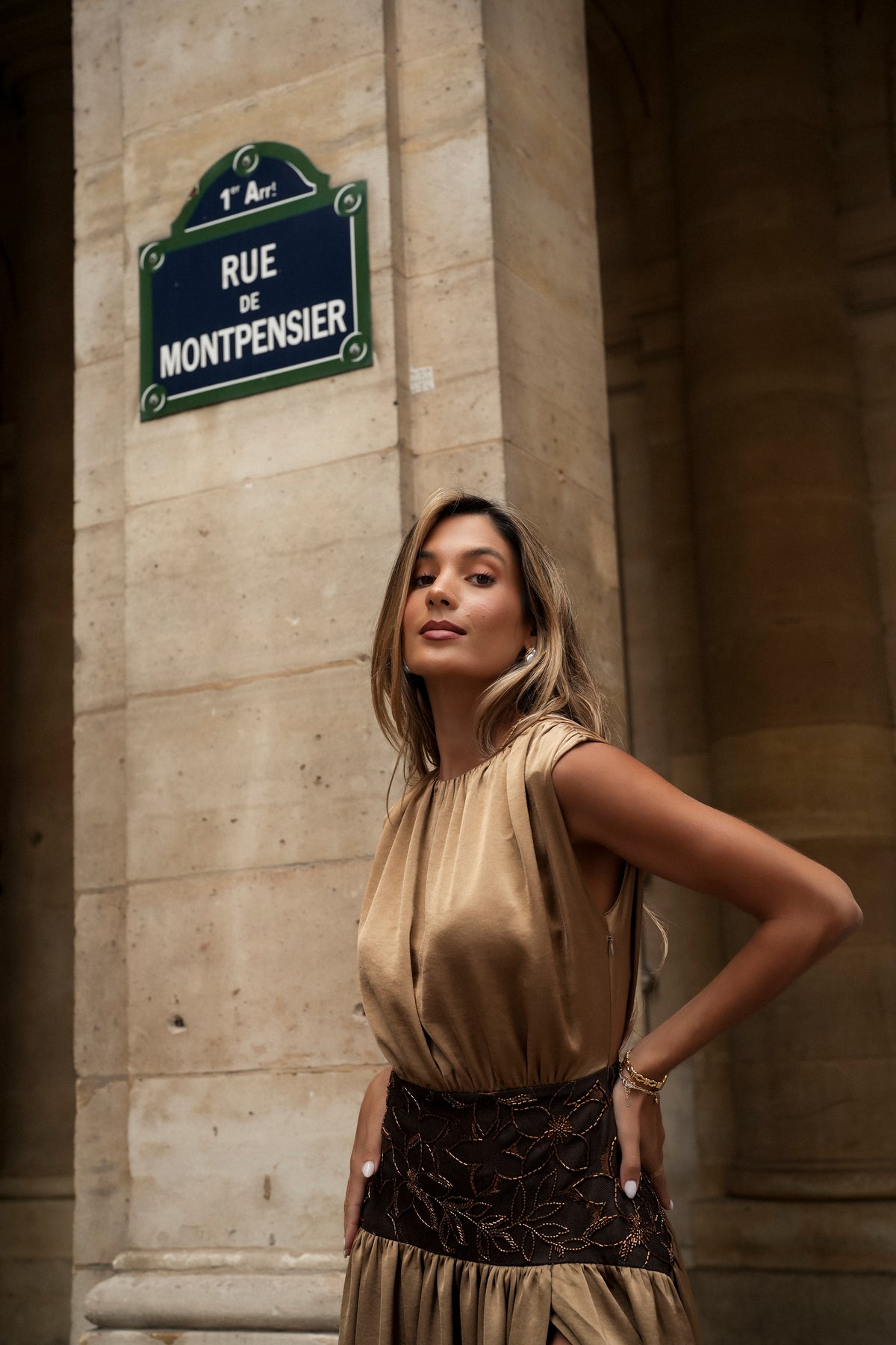 Inspirado en la elegancia atemporal de los grandes salones parisinos, este vestido combina un cuerpo fluido en doble satén con un efecto fajín bordado de abalorios que realza la cintura con delicados motivos florales. La abertura lateral aporta movimiento y sensualidad, equilibrando la sofisticación del diseño con un toque de modernidad. Perfecto para brillar en cualquier evento especial con un estilo inconfundible.
