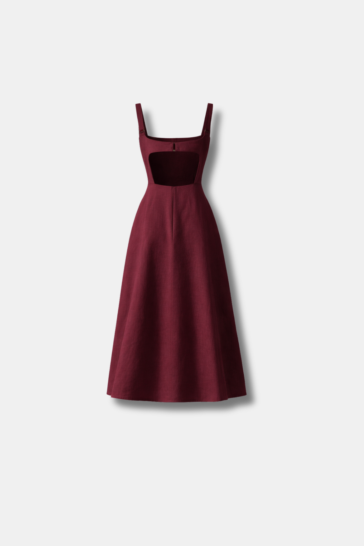 This linen dress is an elegant and minimalist piece that captures the essence of summer with sophistication. The design features thin straps , a square neckline , and a slightly flared silhouette that adds movement and a touch of freshness. The linen fabric gives it an organic and breathable texture, perfect for warm weather.
