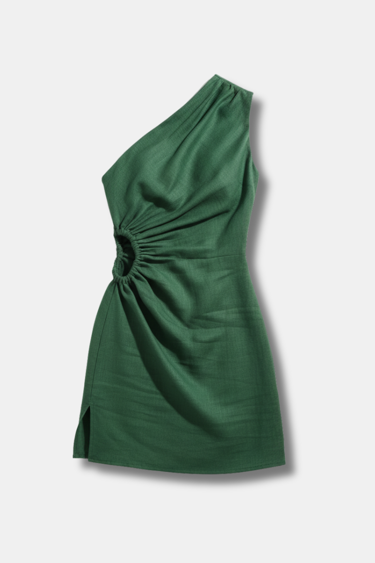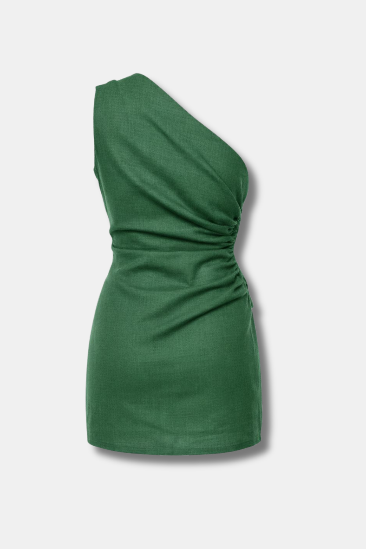 Short linen dress with a unique asymmetrical cut. The design has an adjustable side slit for comfort on warm summer days. The linen fabric allows the skin to breathe better while staying comfortable at the same time. Sign up for this summer's style!