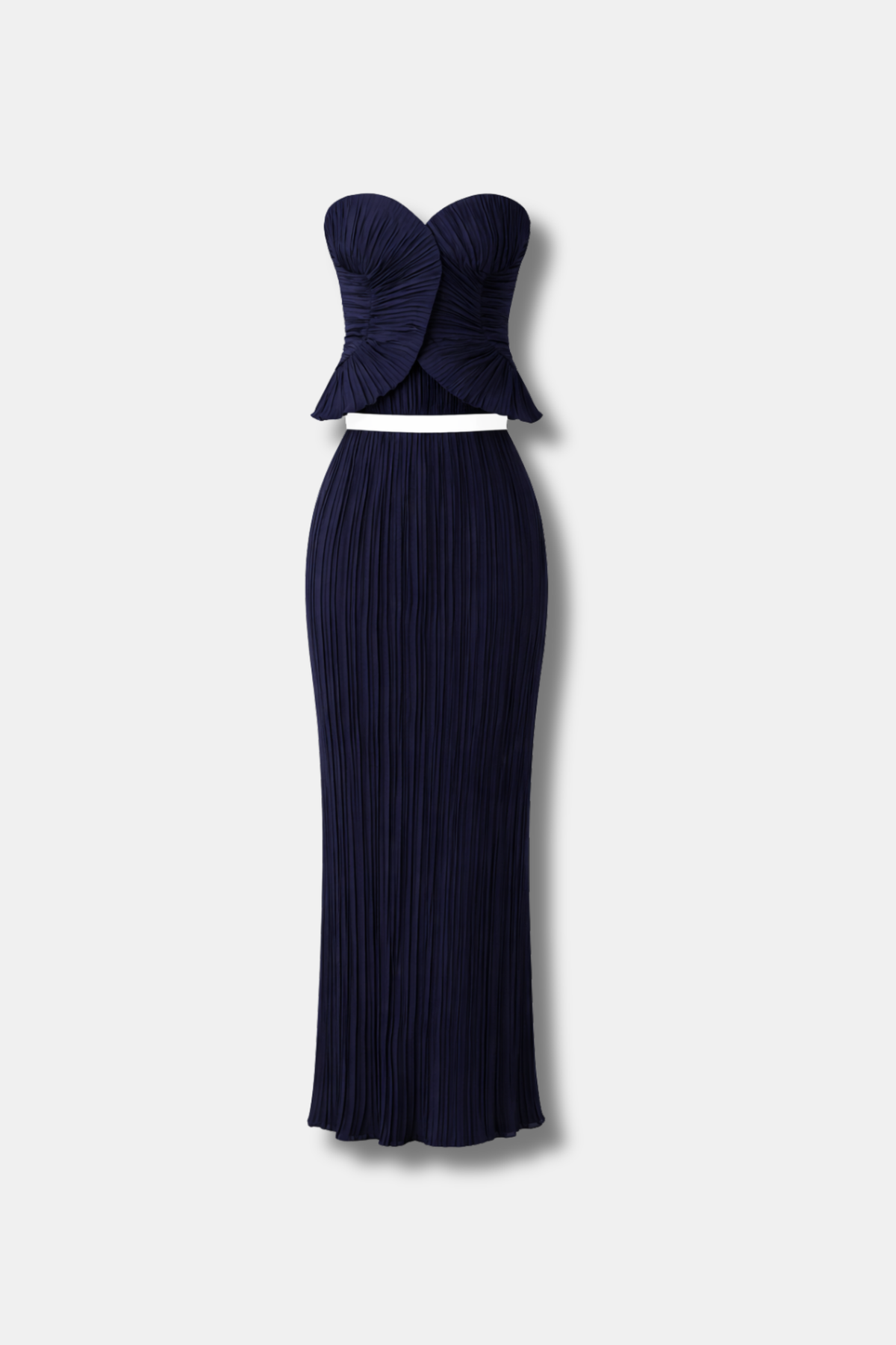 The Marbella set is perfect for sophisticated and elegant women. It consists of two pieces: a pleated corset that enhances your figure with a sexy sweetheart neckline and a pleated skirt that adjusts with an elastic waist for greater comfort, both in high quality pleated fabric with a delicate sheen. Fully lined and with a back zipper closure for a perfect fit. Stand out in this exclusive set!