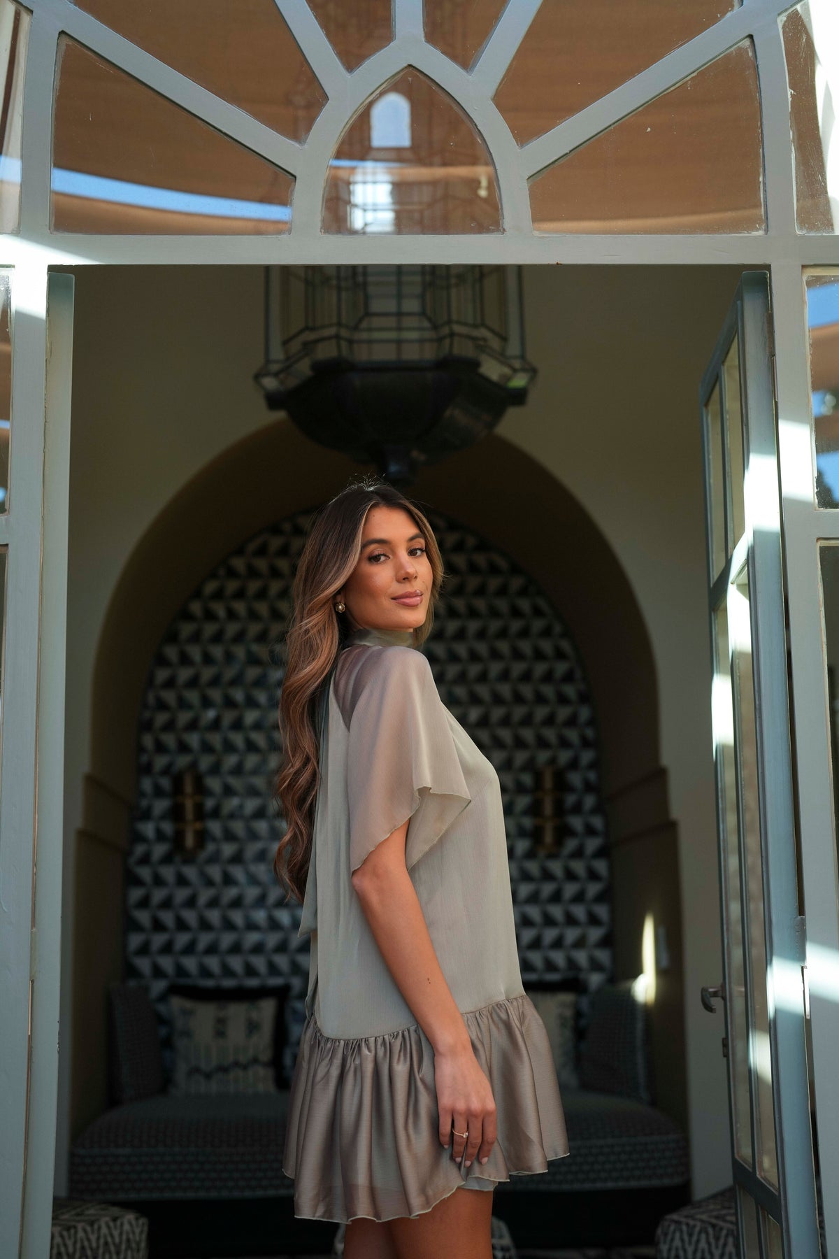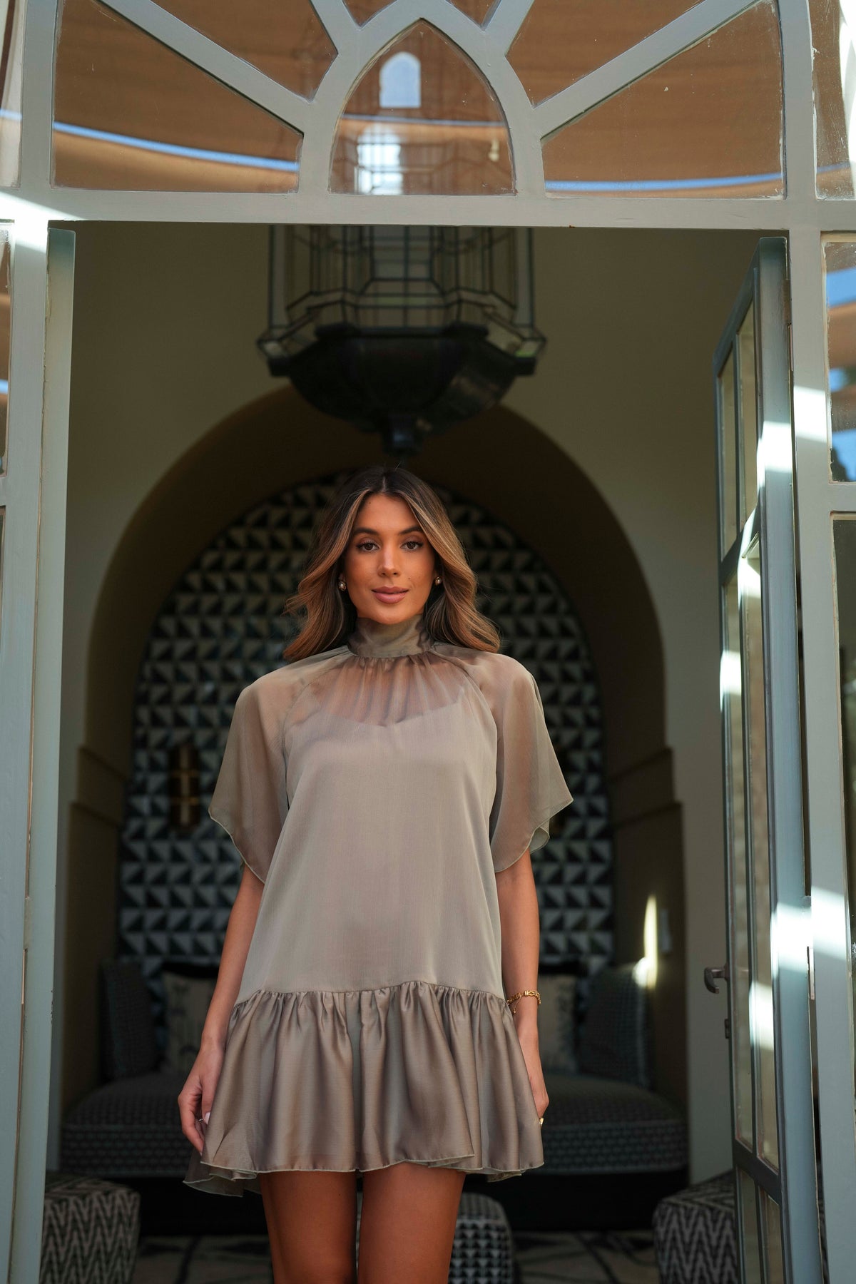 Découvrez la robe VERA, une pièce sophistiquée qui allie élégance et fluidité. Confectionnée en mousseline semi-transparente avec un col montant et un nœud décoratif, cette robe présente une construction double épaisseur : la mousseline extérieure crée un effet vaporeux, tandis que la doublure intérieure en satin assure maintien et opacité. Il en résulte une robe polyvalente qui se porte aussi bien le jour que le soir, idéale pour celles qui recherchent une touche de personnalité raffinée.