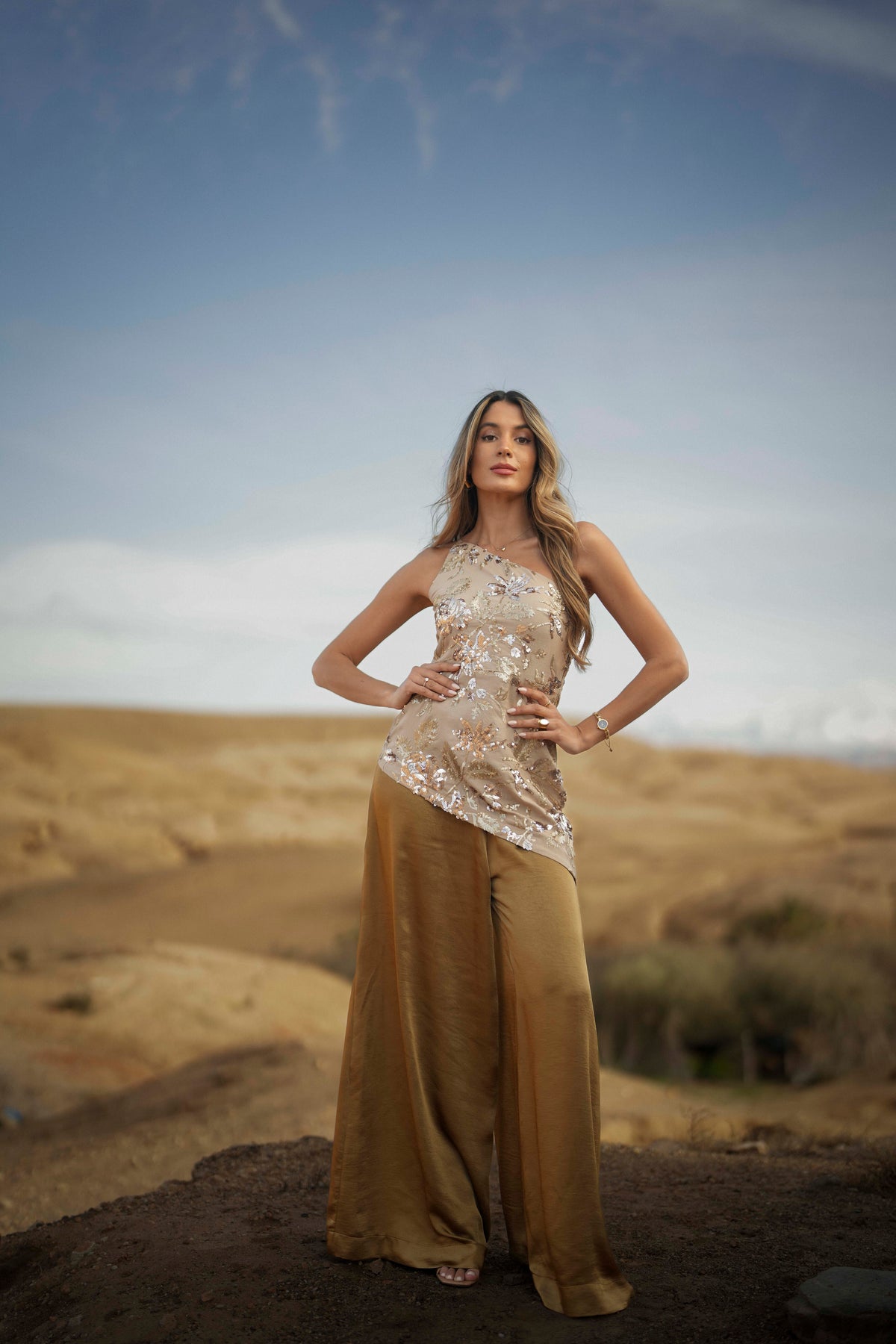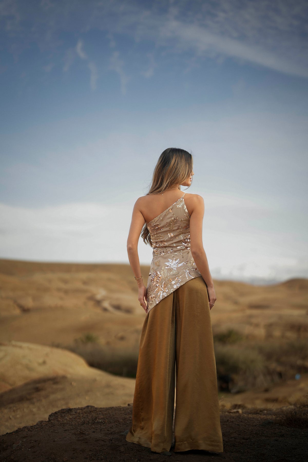 Le pantalon Dalia est un modèle fluide à jambes larges qui allie confort et élégance. Confectionné en satin raffiné, il offre une finition soignée et une grande liberté de mouvement. Sa taille élastiquée épouse parfaitement les formes, assurant une liberté de mouvement optimale sans compromettre la coupe. Idéal pour créer des looks variés, des plus décontractés aux plus sophistiqués. Une pièce polyvalente qui sublime toutes les tenues grâce à sa texture luxueuse et sa silhouette contemporaine.